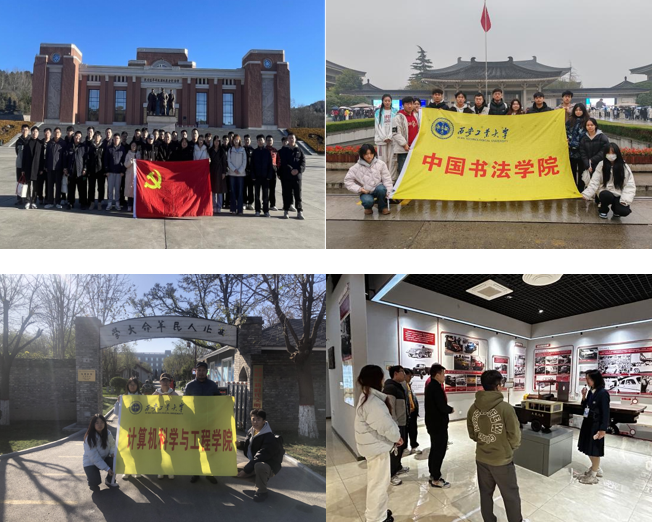 光电工程学院、新生院、中国书法学院以及西安圣彼得堡理工学院携手组织各族学生参观陕西历史博物馆秦汉馆,通过领略历史文化瑰宝,强化学生对中华民族伟大复兴所肩负的责任感与使命感;建筑工程学院组织少数民族学生代表前往长安大学公路交通博物馆参观学习,让学生在专业领域的历史展示中拓宽视野,增进知识储备;机电工程学院组织学生深入照金陕甘边革命旧址参观;计算机学院带领少数民族学生走进西北人民革命大学旧址博物馆,让师生们沉浸式地感受党的光辉历程与革命先辈的英勇事迹,进一步激发学生爱国情怀与奋斗精神;文学院积极组织同学们参与第十届丝绸之路国际艺术节的“丝路映像·微短剧主题展映”,并投身于西安市西安(泰发祥)马拉松赛事,在文化艺术的交流碰撞与体育竞技的活力释放中展现当代大学生的多元风采与蓬勃朝气;设计学院奔赴八路军西安办事处开展“铸牢中华民族共同体意识”实践教育活动,同时前往西安市西咸新区秦创原综合服务中心参观学习,将思想政治教育与创新实践探索相结合,提升学生的综合素质与民族凝聚力;西安圣彼得堡理工学院前往西安市未央区康久养老院,为老人们送去温暖与关怀,培养学生的社会责任感和爱心奉献精神。活动参与学生人数超过 150位,涵盖了多方面的教育实践内容,对学生的全面发展起到了积极的推动作用。