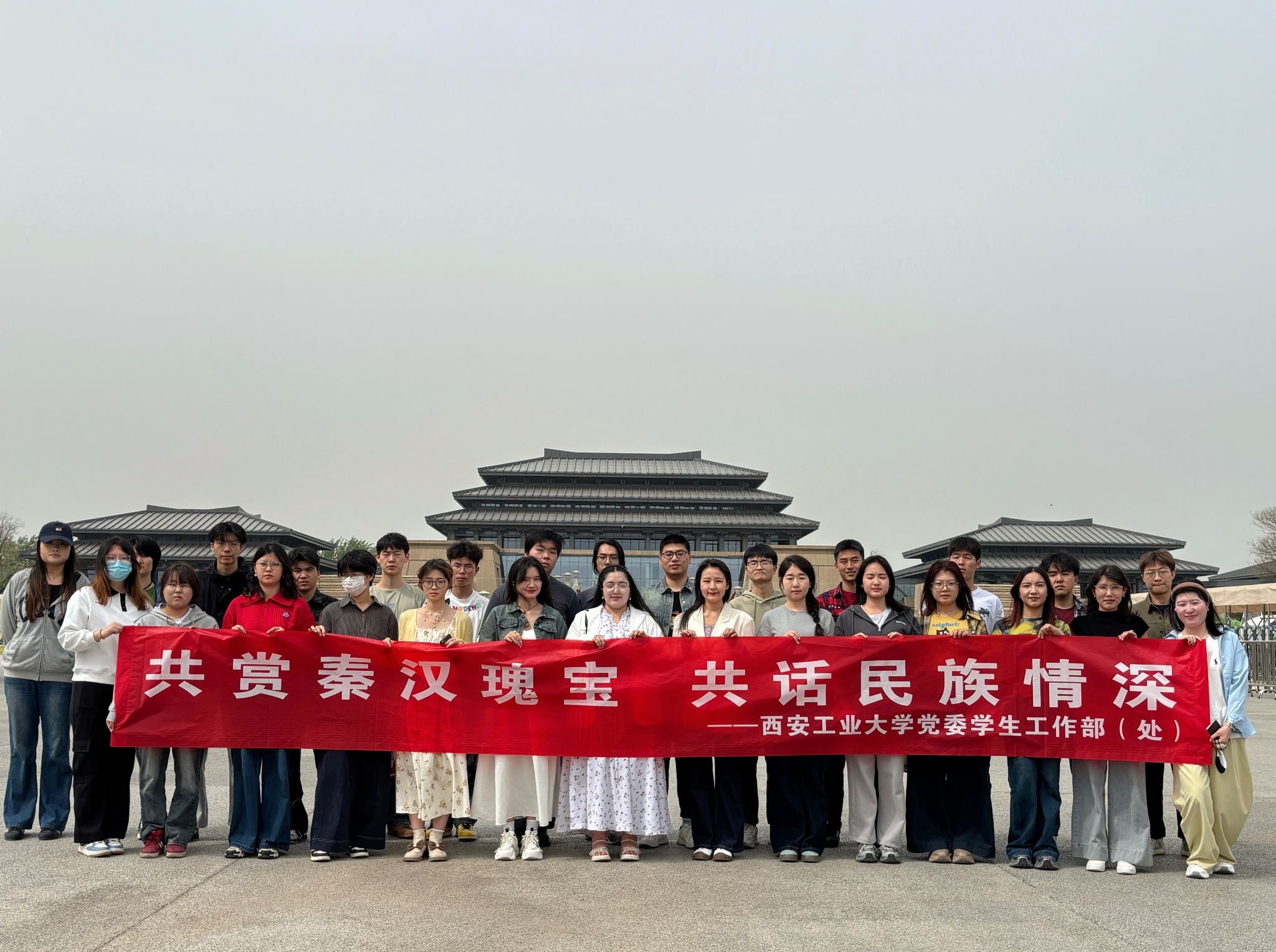 为深入贯彻党的二十大精神和党的二十届三中全会精神,进一步加强铸牢中华民族共同体意识教育,4月11日,党委学生工作部组织30余名各族学生代表前往陕西历史博物馆秦汉馆,开展“共赏秦汉瑰宝,共话民族情深”铸牢中华民族共同体意识主题教育实践活动。