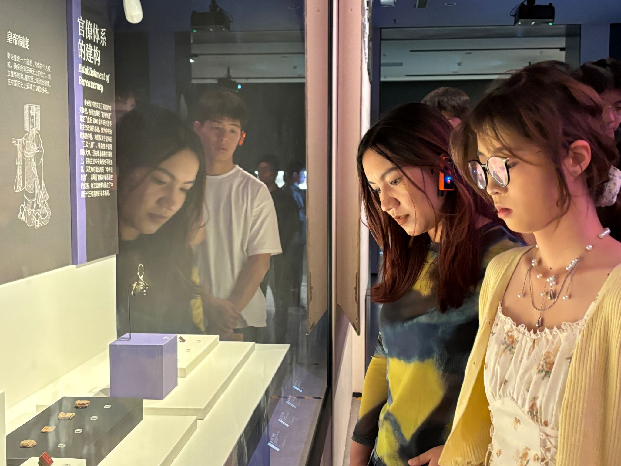 在讲解员的带领下,同学们依次参观了秦汉文明陈列馆,近距离观赏了秦兵马俑、汉代玉器、青铜器等珍贵文物,深入了解秦汉时期统一多民族国家的形成与发展。来自维吾尔族的学生阿布力艾则孜·吾布力说道:“看到两千年前的文物,我深刻感受到中华民族的历史就是各民族共同书写的,无论是秦汉的‘书同文、车同轨’,还是今天的民族团结,中华文明始终是各民族共有的精神家园。”
