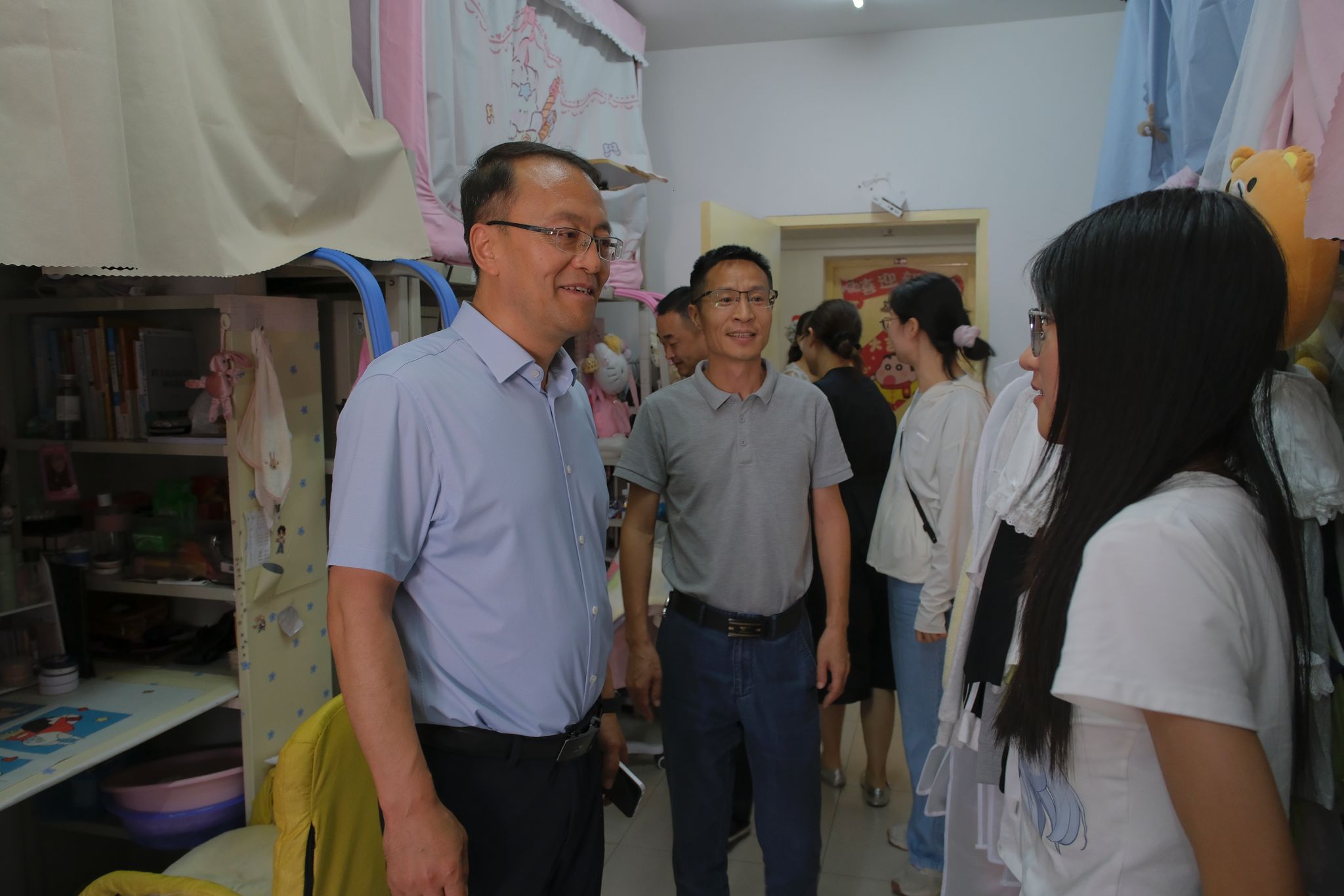 新生院党委书记姬洪波、副书记翟超,学工部、新生院相关工作人员陪同走访。