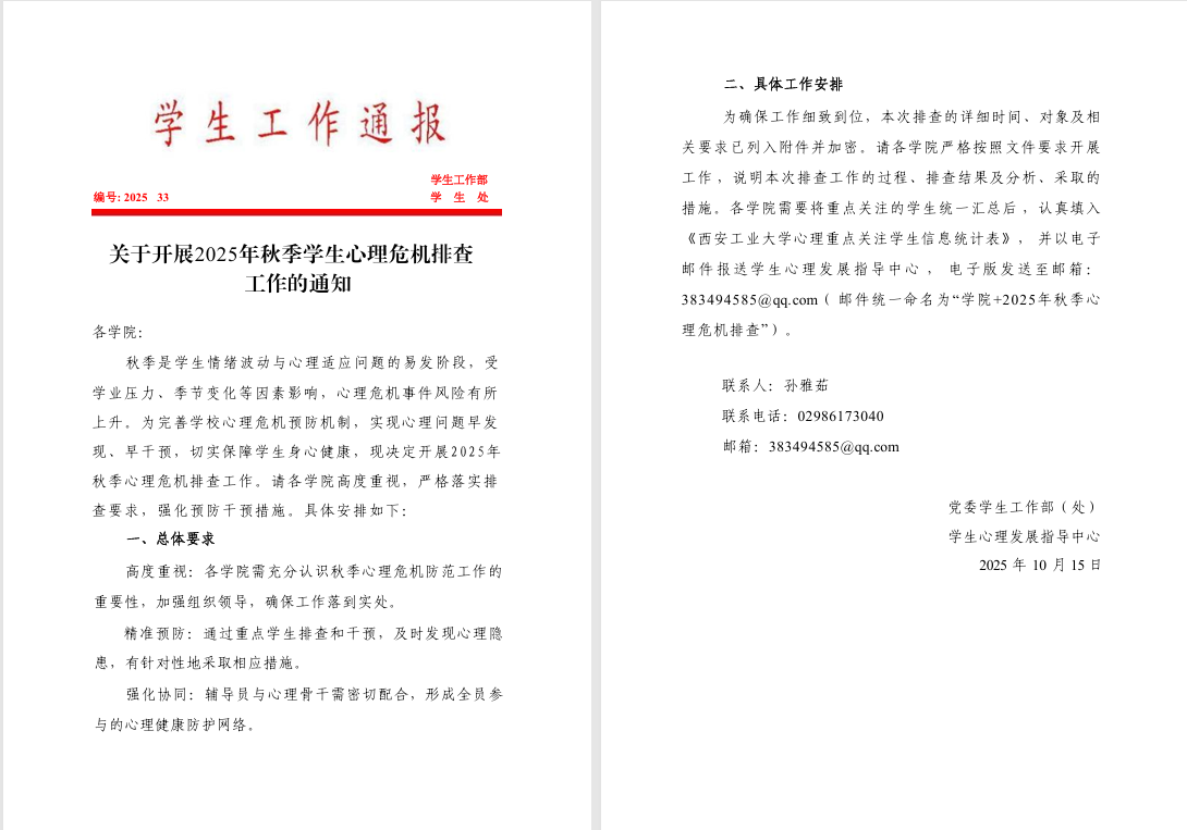 关于开展2025年秋季学生心理危机排查工作的通知