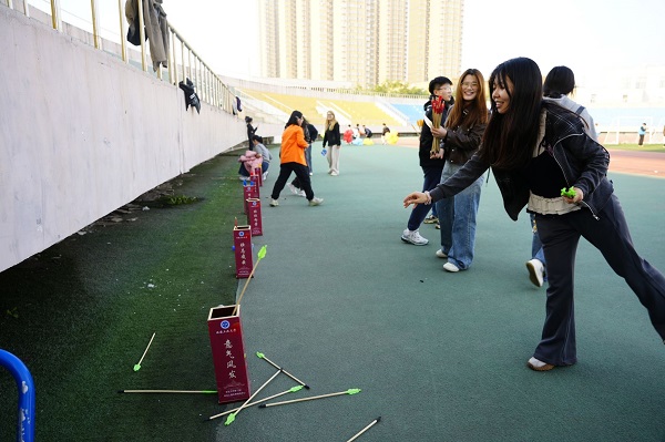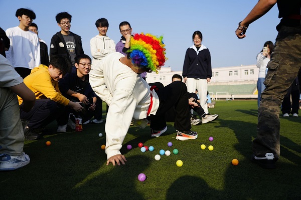 伴随着动感洋溢的集体热身操,运动场瞬间变为跃动的海洋。本次运动会巧妙融合竞技性与心理成长性,精心设计了“旱地龙舟”“公鸡下蛋”“珠行千里”“旋风奔跑”集体项目,以及“逆风奔跑”“趣味投壶”“天旋地转”“蒙眼踏步”个人挑战项目。赛场上,选手们奔跑、跌倒、调整、再出发,不仅展现了拼搏的身姿,更在协作与突破中完成了一次次心灵的对话。场边掌声、欢呼声此起彼伏,每一句鼓励都成为选手们勇往直前的力量。