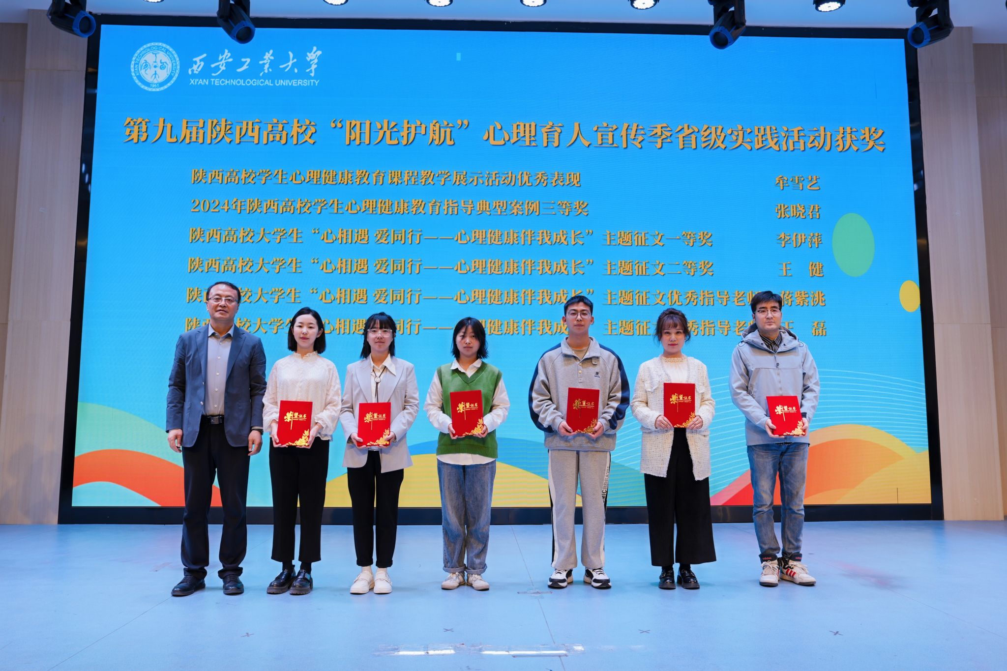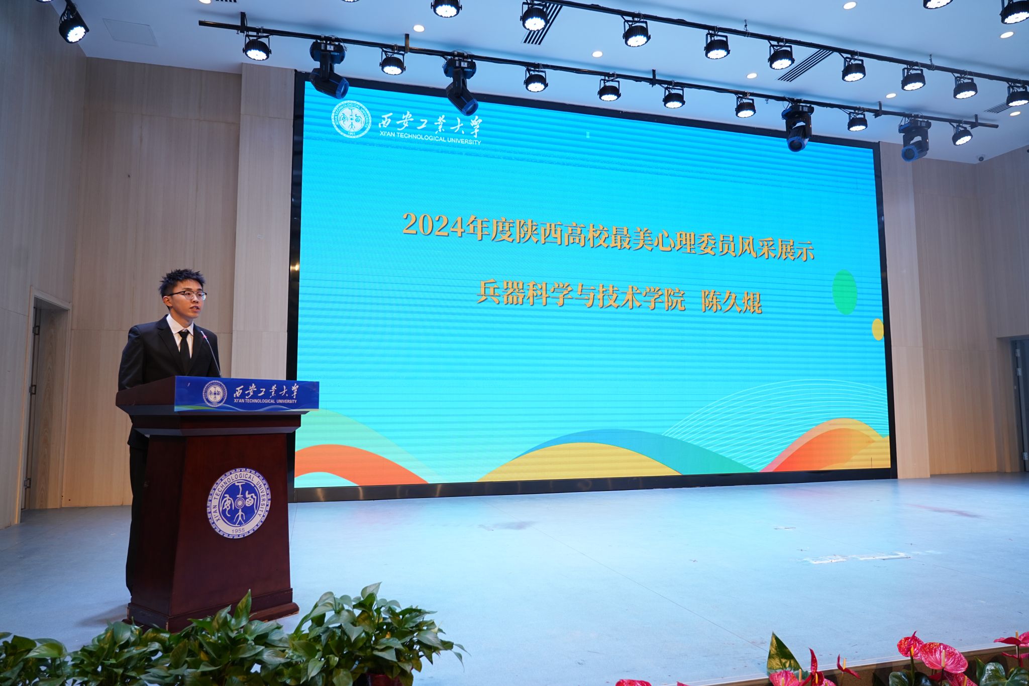 启动仪式在活力四射的《啦啦操》表演中拉开序幕,青春洋溢的舞姿点燃全场热情。随后,心舞动《人人都是大梦想家》以灵动韵律传递逐梦力量,心灵之歌《仰望星空》用歌声唤起学子对理想的追寻,手语操《世界赠予我的》以无声的艺术诠释感恩与包容。全体师生在《善爱我》宣誓环节中庄严承诺,表达了关爱自我、善待他人的坚定信念,将现场氛围推向高潮。2024年陕西省高校“最美心理委员”获得者陈久焜同学登台分享工作经验,彰显朋辈互助的积极作用。学校还对第九届“阳光护航”心理育人实践活动中涌现出的优秀师生进行表彰,激励全体心育人继续深耕心理健康教育沃土。