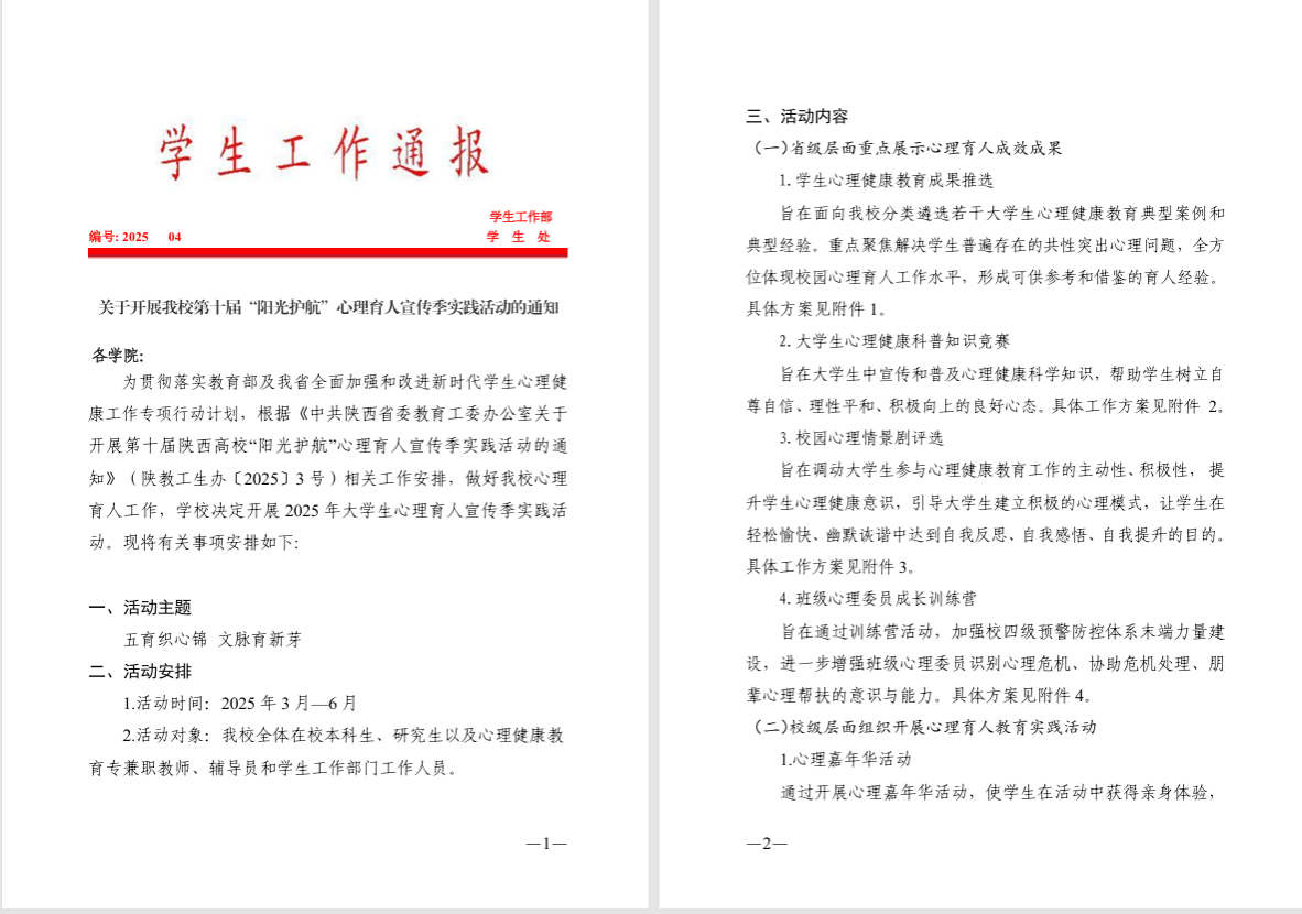 上一篇:西安工业大学第十届“阳光护航”心理育人宣传季实践活动正式启动