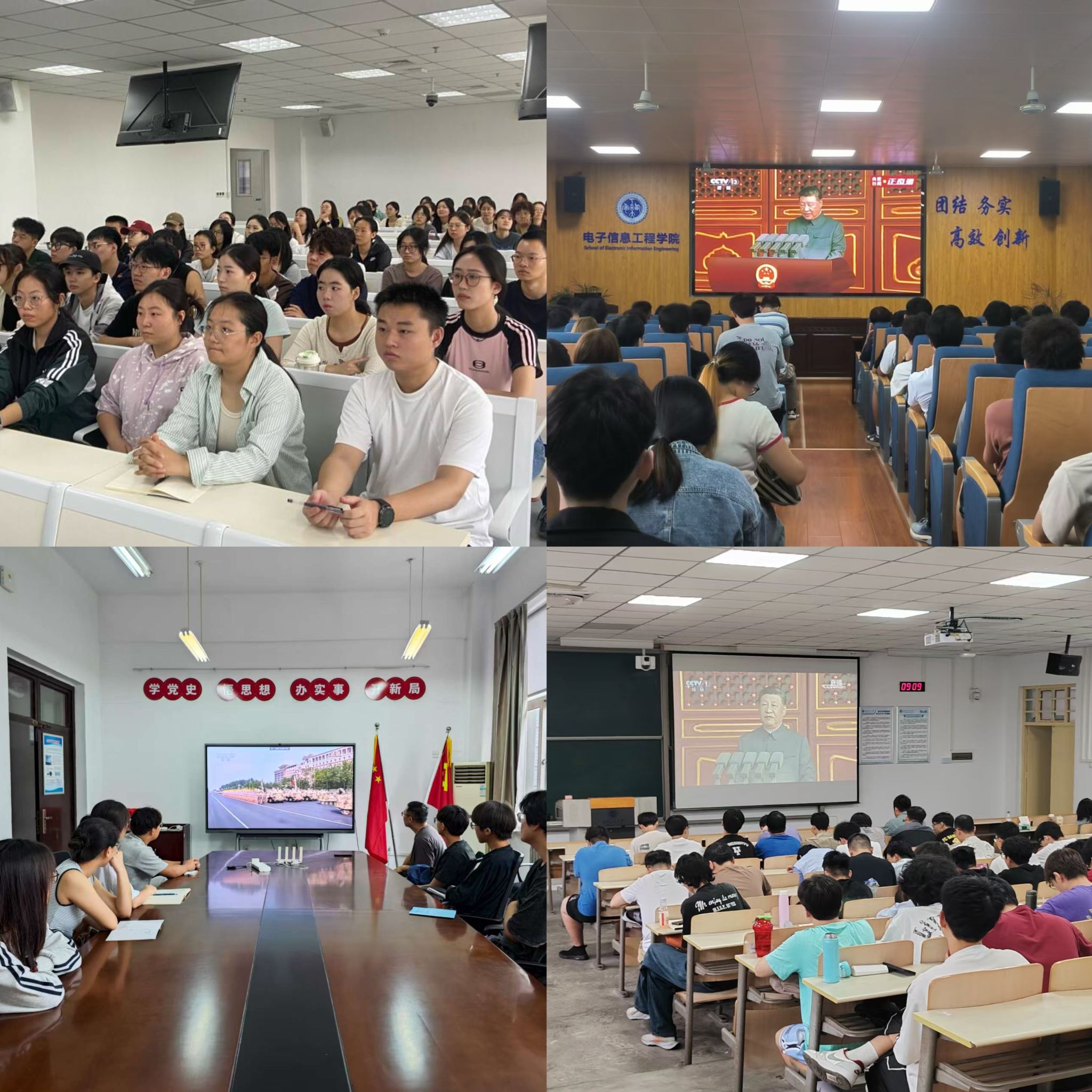 9月3日上午,纪念中国人民抗日战争暨世界反法西斯战争胜利80周年大会在北京天安门广场隆重举行。学校统一安排,各学院积极组织师生集中收看阅兵盛况,同上一堂“爱国主义思政教育课”。