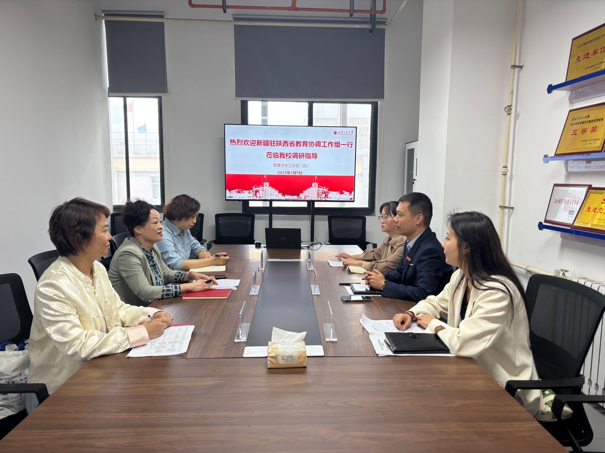 5月9日,新疆驻陕西省教育协调工作组组长王梅林一行莅临我校调研指导少数民族学生教育管理工作。我校党委学生工作部学生教育科科长韩霄、“石榴籽恬”辅导员工作室负责人乔娜及少数民族辅导员那迪娜参加调研座谈会。