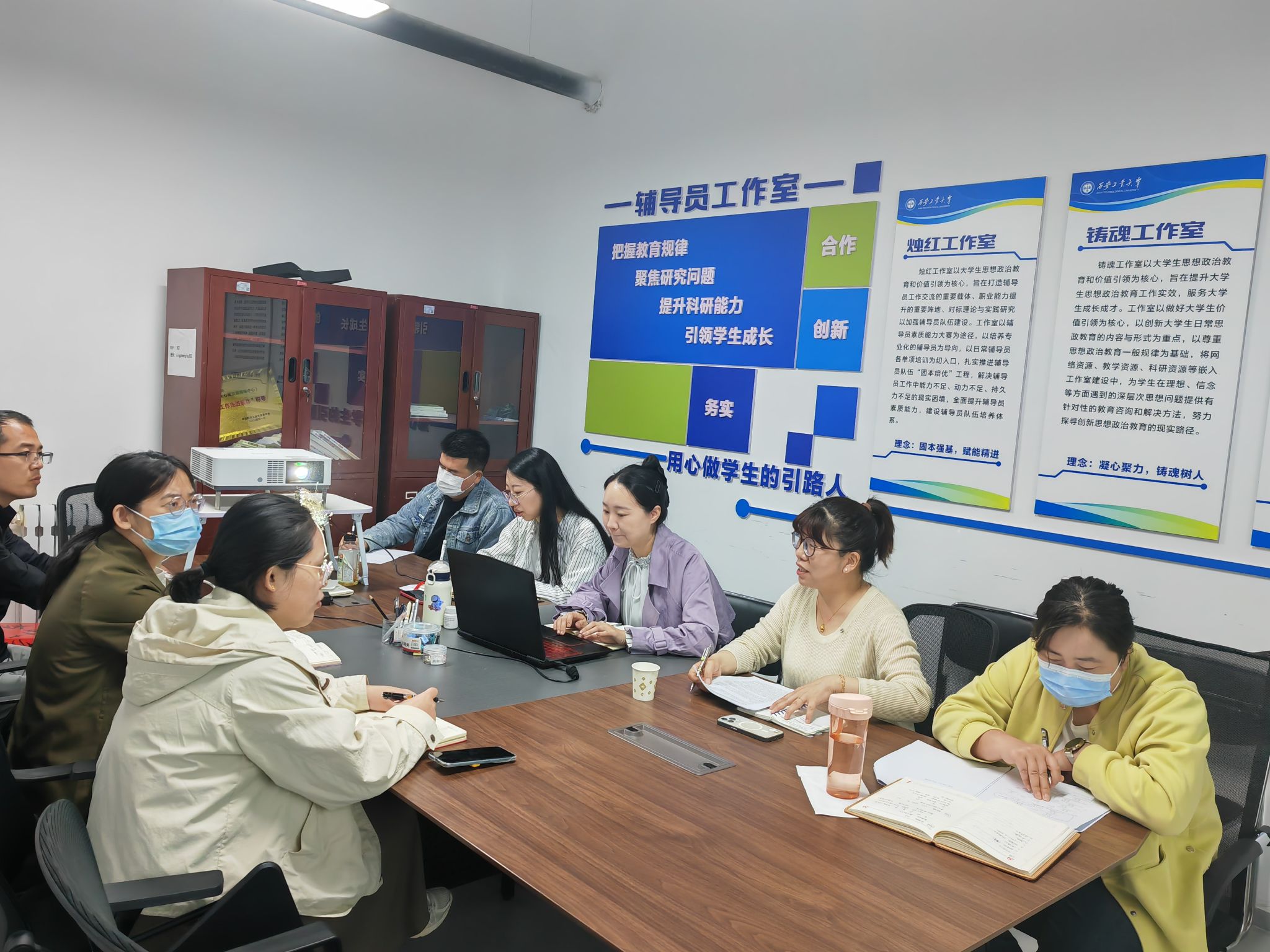 随后,工作室负责人许格宁对工作室近期取得的荣誉进行通报,并以PPT形式展示了本次工作室申报省级高校辅导员工作室的答辩材料。会后,工作室全体成员表示,不仅要在夯实理论积累上下功夫,还要注重拓展线下实践活动,在学思结合中不断发挥工作室的引领示范作用。