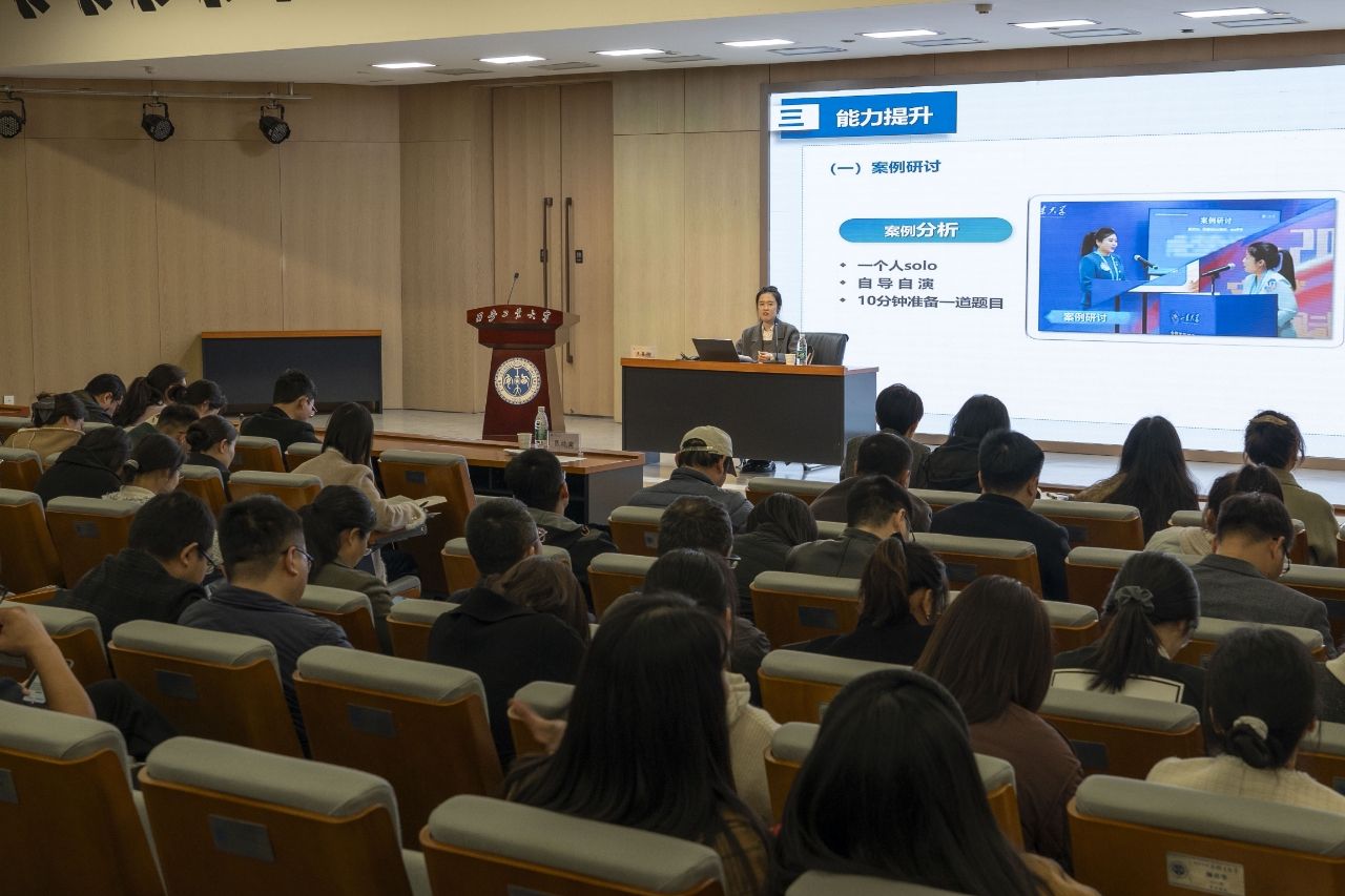 王昱泽围绕国赛、省赛,从环节解读、备赛技巧、能力提升、心得感悟四方面展开全面剖析。她强调:辅导员需注重日常积累,提升思想政治教育、沟通协调及解决实际问题的能力,并分享“赛前有决心、备赛有耐心、赛中有信心,赛后平常心”的参赛心态调整秘诀。