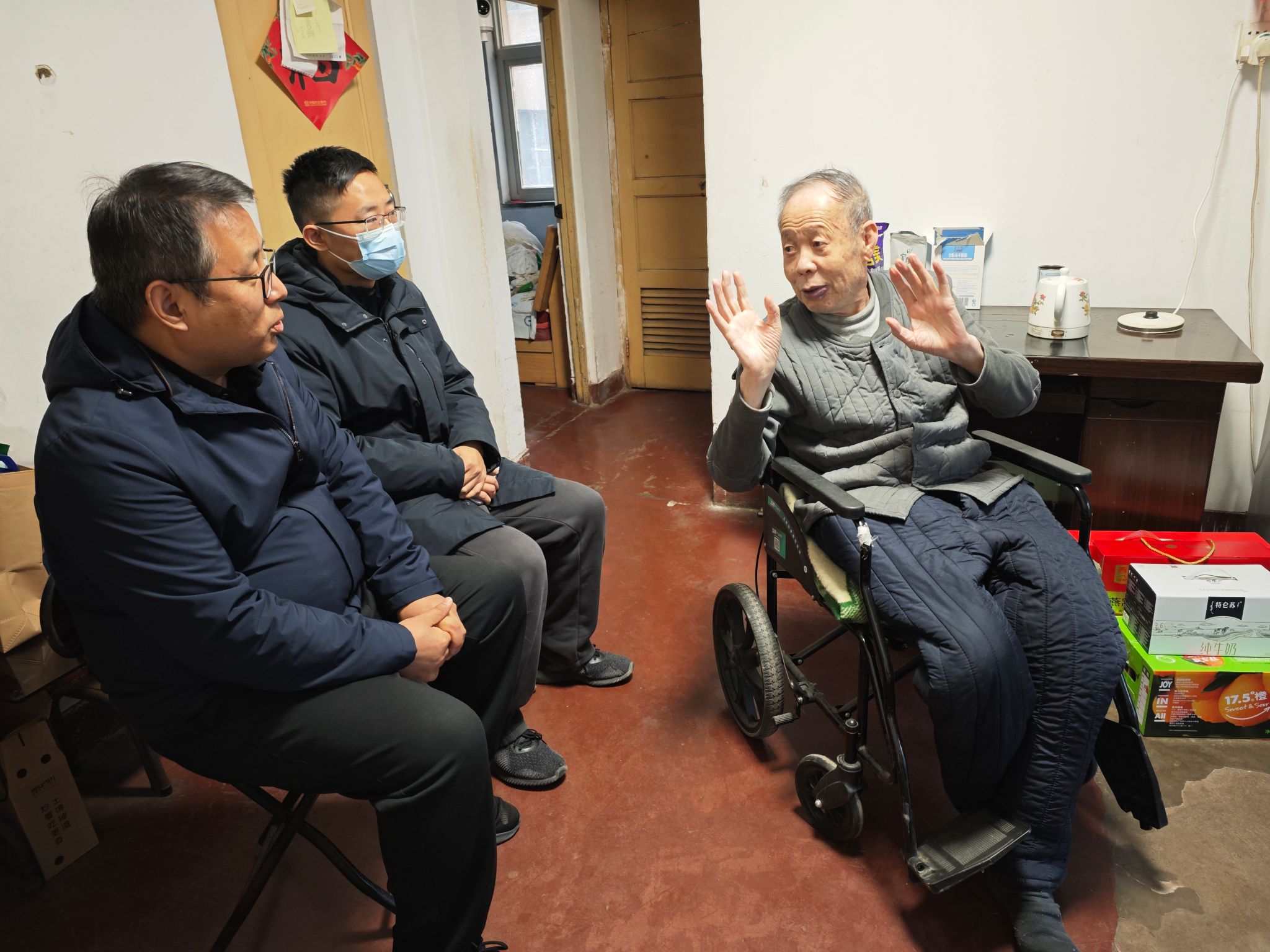 张晓宾一行走访过程中,与退休干部亲切交谈并送上春节慰问品,了解他们的身体状况、生活情况,感谢退休干部为学生工作和学校发展做出的贡献以及一直以来对学校发展的关心与支持,向退休干部介绍了学校2024年学生工作开展情况及学校发展取得的成绩,悉心听取老同志对学生工作的指导,并叮嘱退休老同志要保重身体,提前祝大家新年快乐,阖家幸福!
