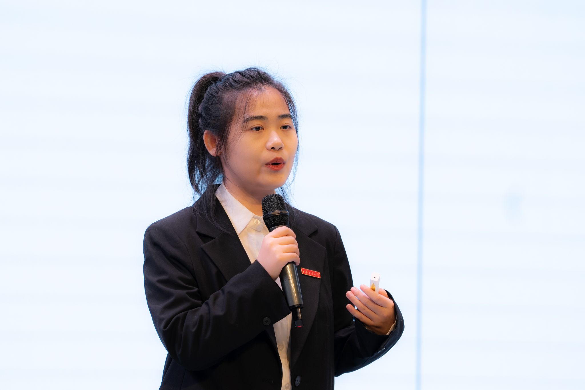 材料与化工学院辅导员胡娜以《科创之路,点亮育人之光》为题,讲述了她携手学生共赴创新之旅,将科研课题转化为助农项目,并带领团队克服重重困难,最终在省级科创竞赛中获奖的故事。她说:“我将于细微处耕耘,伴学生共成长。”