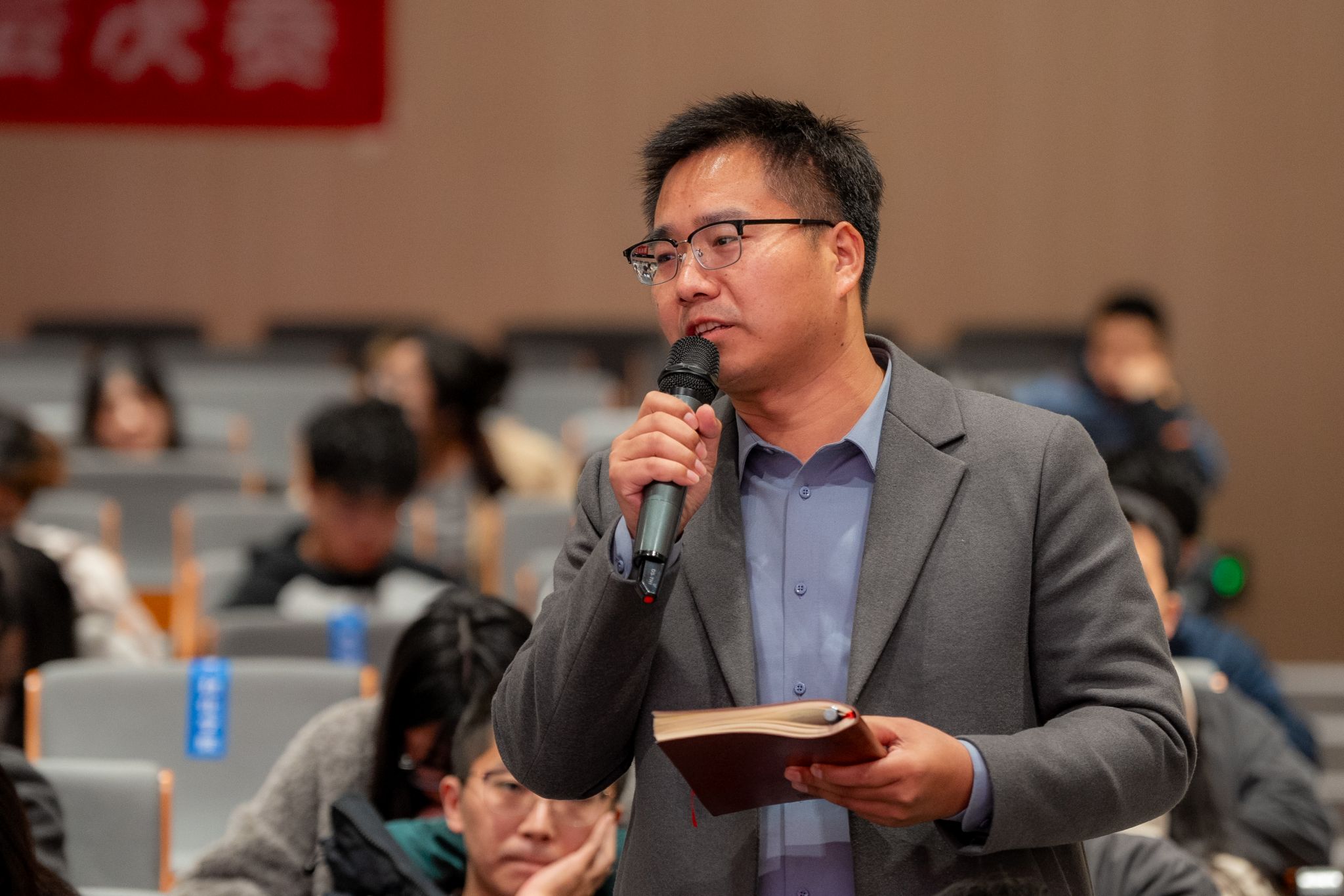 机电工程学院辅导员安春雨以《秉烛铸魂写出奋进之笔,乐享工作绘就精彩篇章》为题,讲述了他与“学霸宿舍”的青春故事:从“问题宿舍”到全员成才,从“学业小白”到考研名校,他的耐心指导和用心陪伴促使每个学生不惧风雨、勇往直前。