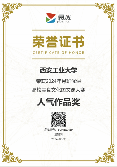 近日,教育部易班发展中心公布了2024年易班优课高校美食文化图文课大赛评选结果,本次活动共有全国23个省(区、市)和新疆生产建设兵团总计175所易班共建高校报名参赛,超过20万大学生给各校作品点赞。我校报送的作品荣获“人气作品奖”,文学院学工办主任李聪、光电工程学院辅导员李俊洁、新生院辅导员刘叶获评“优秀指导教师”。