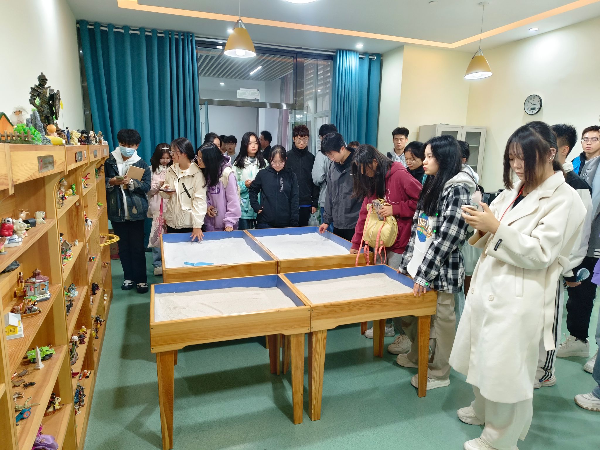 本次活动以2024级本、硕班级为单位,分批次有序进行,覆盖了全校183个班级,共计6173名本、硕新生。在为期一个月的参观周期内,新生们在学生心理发展指导中心老师和助理们的引导下,不仅系统了解心理中心的发展历程、服务理念及工作流程,亲身体验了预约等候室的温馨环境、团体辅导室的协作乐趣、心理咨询室的专业疏导、宣泄室的情绪释放空间以及沙盘游戏室的创意表达,每一环节都旨在激发新生们对心理健康的关注。