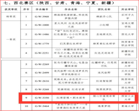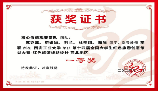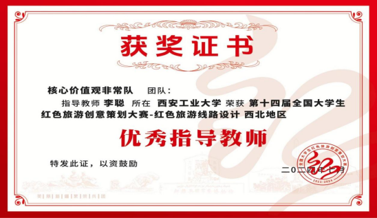 由铸魂工作室组织申报的“红湾秘境•剧本探奇”方案紧扣国家政策,深掘红色资源,将红色旅游与爱国主义教育紧密结合,精彩地阐述了项目的创意理念和实施方案,展示出了团队扎实的专业功底和创新思维,获得专家好评,荣获本届大赛——红色旅游线路设计组西北赛区一等奖,工作室负责人李聪荣获优秀指导教师。