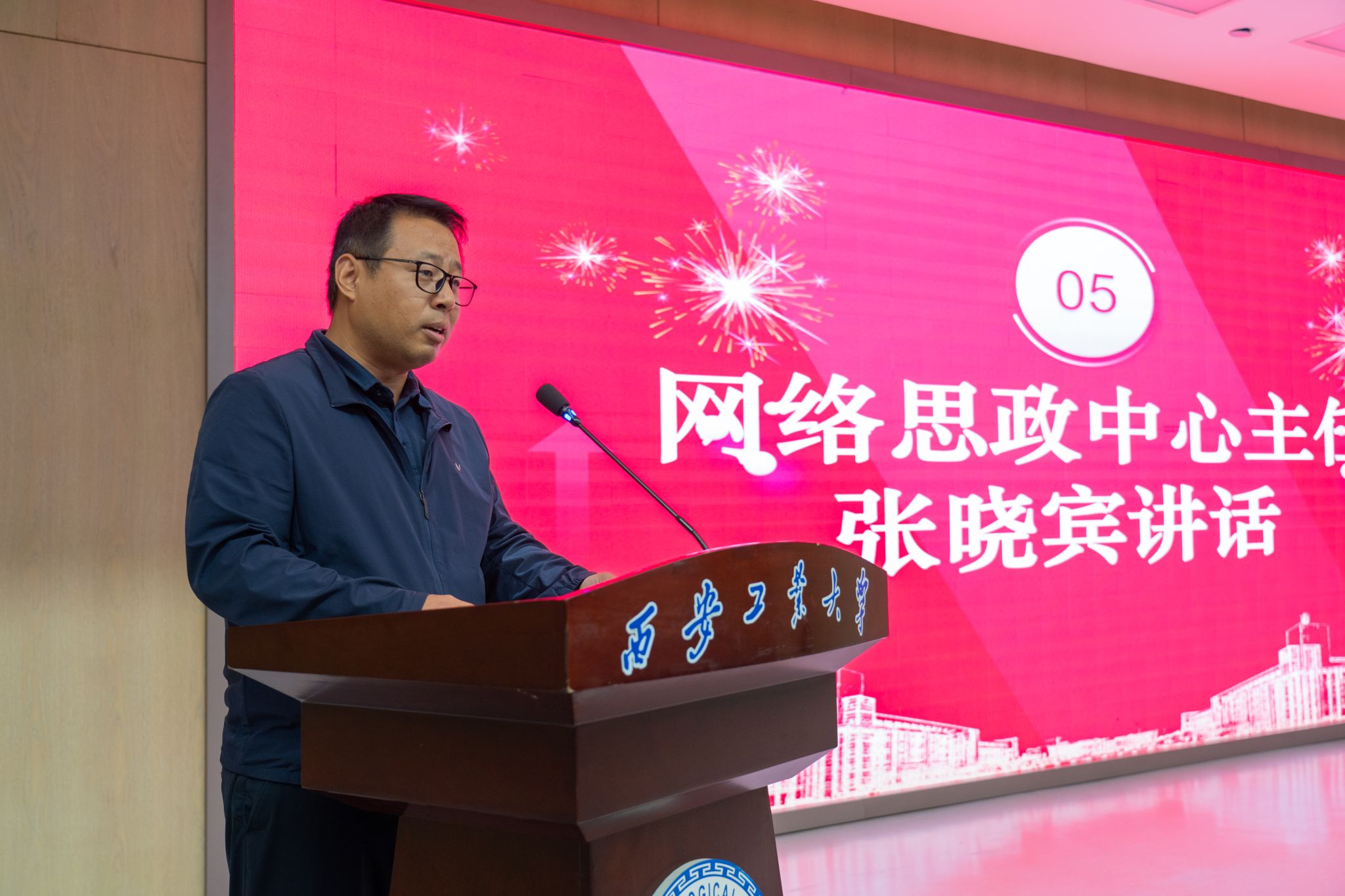 张晓宾作总结讲话。他首先对网络思政中心2023-2024学年的工作表示肯定,对团队为学校网络思政工作做出的贡献表示认可。随后,他围绕“为什么网络思政工作很重要”“怎么开展网络思政工作”两方面与现场师生展开交流。他强调,要充分认识到网络思政工作的必要性和重要性,积极应对互联网技术快速迭代、意识形态“主战场”转移对高校思想政治工作带来的巨大新挑战,探索如何通过优质内容黏住学生群体,进一步增强网络思政教育的针对性和实效性是工作的重中之重。他重申,“三个坚持”和“五大建设”是开展网络思政工作的“四梁八柱”,“找小点、抓时效、求真实”“有感觉、有共鸣、有反馈”是开展网络思政的“工作初心”。他希望,团队全体师生要以高度的责任感和强烈的使命感将这项充满荣耀又阳光的工作做好,让“西工琢玉网”成为学校推动大学生思想政治教育工作高质量发展的新引擎。