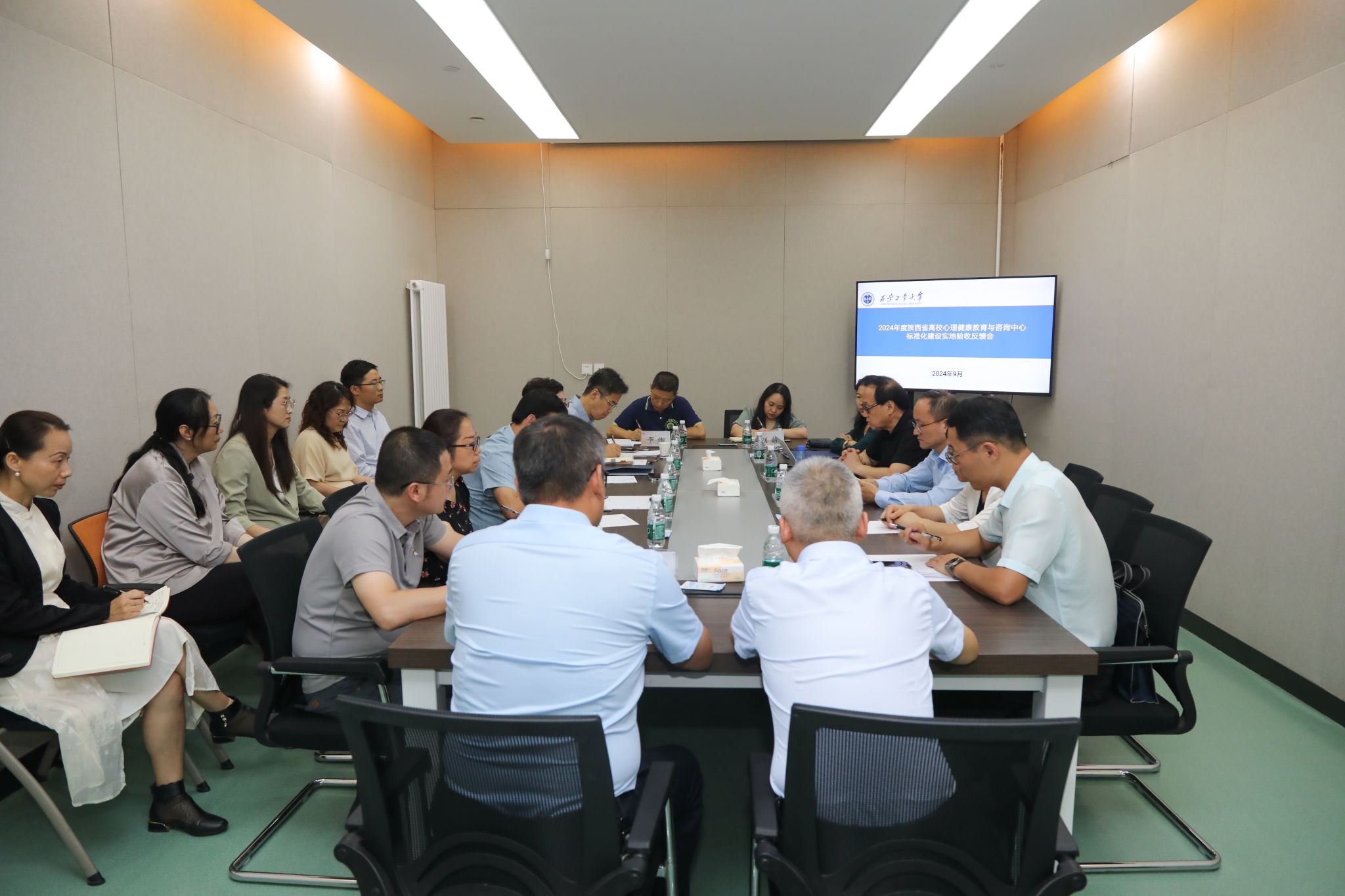 2024年9月27日,省委教育工委专家组郑林科教授一行5人来我校开展心理健康教育与咨询中心标准化(A类)建设实地验收工作。校党委副书记马福,相关职能处室主要负责人、各二级学院学生工作主管领导、学生工作部(处)相关科室负责人以及学生心理发展指导中心全体教师参加会议。