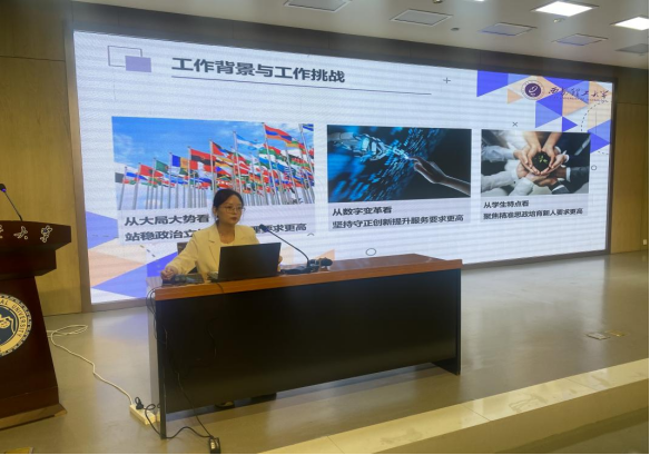 雷晓青作了题为《贯彻落实党的民族宗教工作方针政策,坚决筑牢校园安全防线》报告,她从统一战线的工作任务和范围、当前国内形势对统一战线工作新要求、如何完整准确全面把握党的民族宗教工作方针等方面内容,深刻讲述了党的民族宗教工作方针的历史背景和重要意义,强调了在新时代背景下,做好民族宗教工作对于维护社会稳定、促进民族团结的重要作用。随后,雷部长详细阐述了校园安全防线的重要性,必须坚决防范和打击任何形式的宗教渗透和邪教活动,确保校园环境的纯净和安全。