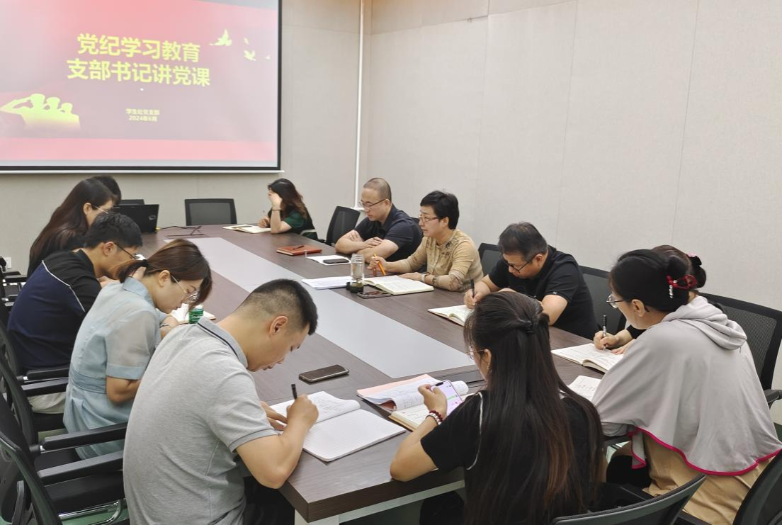 6月25日,学生处党支部书记曹玉玲以《努力学习党规党纪,做勤廉干净担当的党员干部》为主题,在心理中心会议室为支部全体党员讲授党纪学习教育专题党课。