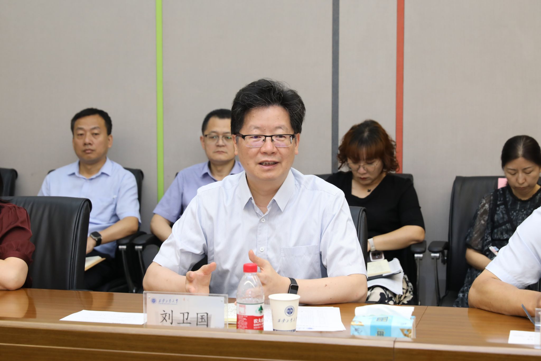 刘卫国对同学们在校取得的成绩表示祝贺,对同学们给予学校的认可表示感谢。他指出,2024届毕业生是学校新生院改革后的第一届毕业生,同时也是经受住疫情考验的一届学生,他向毕业生代表们介绍了学校的发展历史,激励同学们要有“越是艰难困苦越能创造奇迹”的精神去面对未来的挑战。对于同学们提出的问题和建议,他表示,学校会认真研究,充分采纳大家的建议,为同学们提供更好的成长成才环境:一是提供更多的资源支持同学们的学习、科研与发展需求;二是推进教育教学改革,不断提升人才培养质量;三是提升管理服务水平,更好地服务同学们成长成才。他对毕业生们提出三点期望:一是希望同学们毕业后能继续发扬母校“忠诚进取,精工博艺”的校风,为祖国建设贡献青春力量;二是希望同学们在未来的道路上都能遇到良师益友,能够在自己的领域取得最大成绩;三是希望同学们能持续关注母校发展,为母校发展建言献策,贡献力量。
