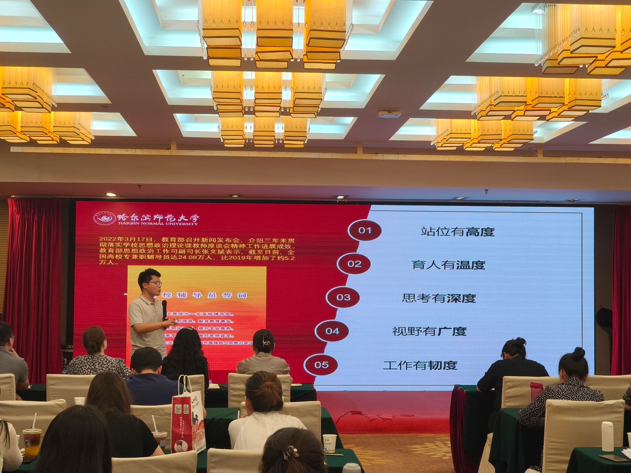 本次培训邀请“时代楷模”“最美奋斗者”、全国道德模范、全国优秀名师、全国师德标兵、全国高校辅导员年度人物等称号获得者、大连海事大学二级教授、博士生导师曲建武,国家高级职业指导师、国家心理咨询师、高级职业生涯规划师、江西省高校辅导员专业委员会理事、中国高等教育学会学生工作分会理事、江西理工大学能源与机械工程学院党委书记饶先发,“全国最美高校辅导员”“全国高校辅导员年度人物”、西南政法大学辅导员、二级教授、政治学专业硕导和MPA 公共管理硕士生导师、重庆市首届辅导员名师工作室负责人简敏,哈尔滨师范大学马克思主义学院辅导员、第七届全国高校辅导员素质能力大赛一等奖获得者、教育部高校思想政治工作骨干刘国权,分别作了“做好大学生人生成长的指导者和引路人”“辅导员团队发展和核心素养打造——谈谈新时代高校辅导员工作室建设的探索与思考”“新时代高校辅导员的任务要求与职业规划”“新时代高校辅导员的‘五度'工作法”专题讲座,其中我校段强、安春雨就工作室建设经验进行了交流发言。