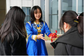 本次活动以“初春”为主题,以游乐会的形式进行,包括“彩绘风筝,‘易’同迎春”、“‘易’同书写,春日浪漫”、“春‘易’盎然,击鼓传花”、“风铃摇曳,‘易’同聆听”、“‘易’趣投壶,雅韵天成”五个部分,内容丰富、形式多样。活动现场气氛热烈,参与学生热情高涨,少数民族同学身穿民族服饰,通过丰富多彩的风采展示和互动游戏,不仅展现了少数民族的独特魅力,也增进了民族之间的文化融合。国际留学生也积极参与其中,通过彩绘风筝、击鼓传花等环节,在寓教于乐中感悟中国传统文化的魅力,增进了国际文化交流。