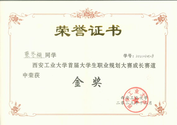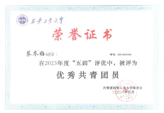 蔡冬梅,女,汉族,中共预备党员,计算机科学与工程学院2021级数据科学与大数据技术专业本科生,担任本班学习委员、西安工业大学广播台节目组负责人。在校期间连续三年成绩排名专业第一。曾获国家奖学金,省级奖项2项,校级荣誉20余项。